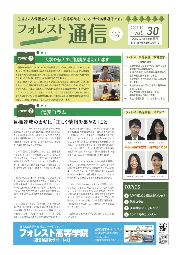 フォレスト通信(10月号/オモテ) 2025 10/07 ブログ 2025年10月9日 ブログ URLをコピーしました! URLをコピーしました! 【気になる記事】高校授業料無償化、自公維が協議/定住外国人も支援/留学は対象外 フォレスト通信(10月号/ウラ) 関連記事 【おすすめ記事】保護者の不安の言葉が、子どもの自己肯定感を下げる? 自信を取り戻すために必要な親の態度とは 2025年10月13日 フォレスト通信(10月号/ウラ) 2025年10月11日 【気になる記事】高校授業料無償化、自公維が協議/定住外国人も支援/留学は対象外 2025年10月7日 【高1〜3生のみなさんへ】転入に向けた相談・見学会を実施中! 2025年10月6日 【中3生のみなさんと保護者さまへ】来年度の入学選考スタート! 2025年10月4日 校外学習(映画鑑賞)に行ってきました! ※参加は自由 2025年10月2日 10月の開校時間につきまして 2025年9月29日 今週は単位認定テスト! 2025年9月26日