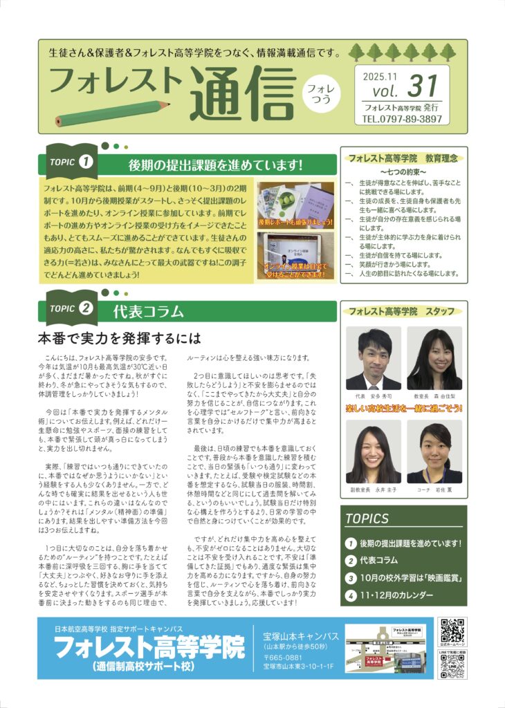 フォレスト通信(11月号/オモテ) 2025 11/10 ブログ 2025年11月8日2025年11月10日 ブログ URLをコピーしました! URLをコピーしました! 【読んでおきたい記事】オンライン学習で「出席」扱い 不登校児の6割知らず 周知に課題 フォレスト通信(11月号/ウラ) 関連記事 フォレスト通信(11月号/ウラ) 2025年11月10日 【読んでおきたい記事】オンライン学習で「出席」扱い 不登校児の6割知らず 周知に課題 2025年11月6日 【高1〜3生のみなさんへ】転入に向けた相談・見学会を実施中! 2025年11月3日 【中3生のみなさんと保護者さまへ】来年度の新入学選考スタート! 2025年11月2日 11月の開校時間につきまして 2025年11月1日 【おすすめ記事】ことばに頼らない親子コミュニケーション 2025年10月31日 【読んでおきたい記事】不登校の小中学生、初の35万人超 増加率は低下 2025年10月29日 【重要】高3生で転入をご検討の生徒さま・保護者さまへ 2025年10月22日